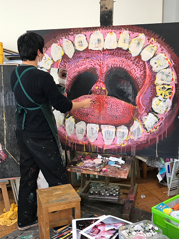 大きな作品に臆せず描いていく姿には顧問も驚きです。