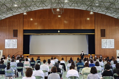 近隣の感染症の状況を鑑み、感染症の対策をとって実施いたしました。欠席予定の方への委任状の依頼から、来校参加者への対応としての密を避けた会場作りや換気・消毒等の諸対応を準備して総会を迎えました。教職員を含め190名を超えるPTA総会となりました。ありがとうございました。