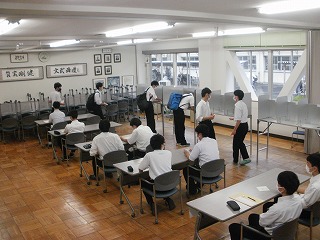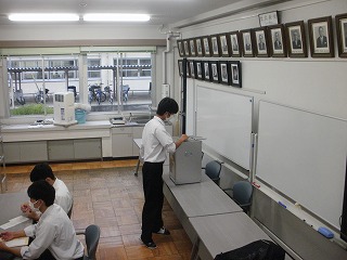 新たな生徒会会長、副会長を決める選挙立会演説会が7/8(木)に実施されました。今年度は三密を避けるため、生徒達は各HR教室にて、応援演説と立候補者演説を教室で聞く形となりました。今回の候補者は、会長候補が3名、副会長候補が2名でした。各候補者の演説は、各々が思いの丈を全力で訴えたものとなっていました。