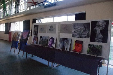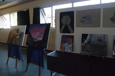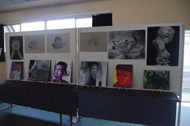 1・2年生の油彩作品を中心に、夏休みに制作したデッサン等も展示しました。