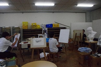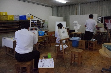足高にはおもしろいモチーフが多く、本物の牛骨があったり、石膏も種類が多くあったりと、とても恵まれた環境で生徒はデッサンができます。