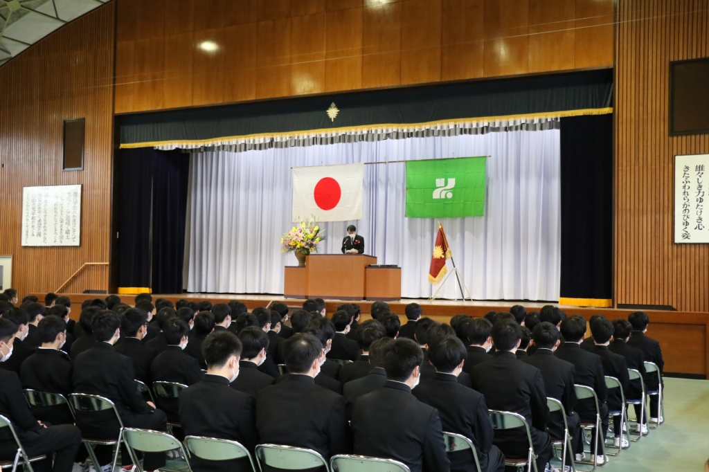 県教育委員会の陣内雄次さま、同窓会会長の早川慶治郎さま PTA会長の舘野進一さまよりご祝辞をいただきました。そのお言葉を鑑み、コロナ禍の制限の多い中、仲間たちと切磋琢磨してきたことを社会に活かして欲しいと思います。