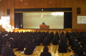 「3年生は、いよいよ大学入試が近づいてきました。試験があれば結果もある。いずれにせよ悔いを残さないようにしよう。1,2年生は、冬休み中自分を少しでも成長させるような過ごし方をするように。」との話がありました。