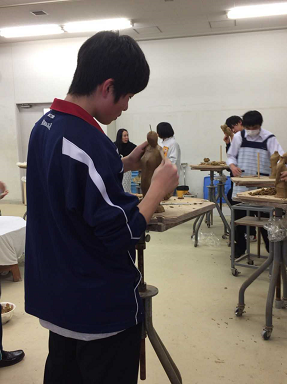 はじめは慣れなかった粘土の制作も、文星芸術大学の吉田先生にご指導を受け、完成することができました。