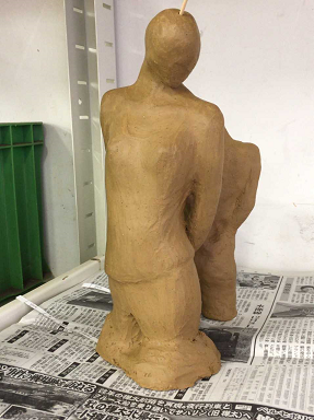 人物モデルを制作し、粘土を用いてテラコッタ(素焼き)作品をつくりました。