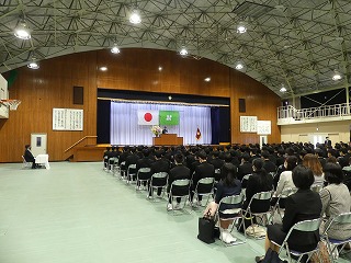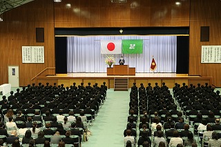 緊張の面持ちで式に臨んだ新入生に対し、校長は式辞で、本校の歴史や校訓、詩人である坂村真民氏の詩を紹介しながら、高校生活への思いと期待を伝えました。