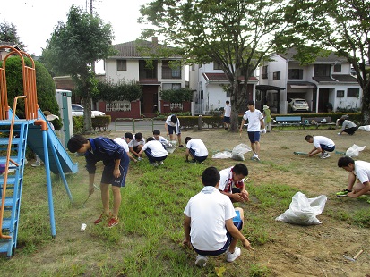 令和元年9月26日(木)6・7時限目に奉仕作業が実施されました。各クラスに分かれて、足利市総合運動公園付近のゴミ拾いや、近隣自治会の除草作業を行いました。彼岸過ぎとはいえまだ暑い中、生徒は額に汗して慣れない除草作業に悪戦苦闘しました。暑さもさることながら、蚊の攻撃により体中のかゆみに耐え、よく頑張ってくれました。付近の住民の皆様からも暖かいご声援や差し入れをいただき、有意義な奉仕作業になりました。