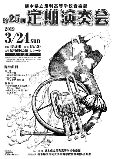 H30年度音楽部の定期演奏会ポスターを美術部員で音楽部員でもある栗原稜君が担当しました。栗原君は昨年度の定期演奏会のポスターも制作してくれました。