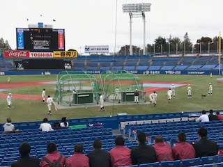 10月14日(日)、例年実施している東京六大学野球の観戦を行いました。1学年はテスト直前のため、2学年16名のみの参加となりました。10時半開始の試合に先立って行われた早稲田・明治両大学の練習を見学し、多くのことを学びました。レベルの高い大学野球を直接目にすることにより、今後の練習へのモチベーションを高めるとともに、校訓の一つである文武両道の精神のもと、大学進学へのモチベーションを高める良い機会となりました。
