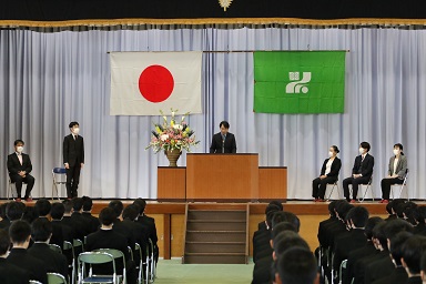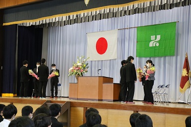 県教育委員会の陣内雄次さま、同窓会会長の早川慶治郎さま PTA会長の舘野進一さまよりご祝辞をいただきました。そのお言葉を鑑み、コロナ禍の制限の多い中、仲間たちと切磋琢磨してきたことを社会に活かして欲しいと思います。