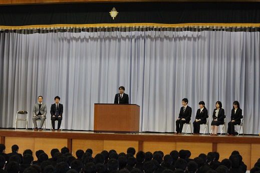 今年度、大学に合格した卒業生28名による受験報告があり、進路決定についてのアドバイスや受験勉強を経ての体験談を語ってくれました。