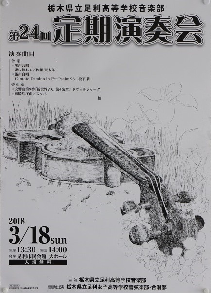 いよいよ、今度の日曜日(3月18日)午後2時より、足利市民会館大ホールにて足利高校音楽部の第24回定期演奏会を開きます。