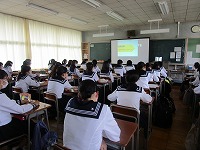 6月7日(月)7時間目、1年生を対象にスマホ・ケータイ安全教室を開催しました。SNSへの投稿や、ネット上での見知らぬ相手とのやりとり、メッセージのすれ違いなど、スマートフォンを利用する上で起こりうるトラブルを題材にした動画を視聴し、外部講師からトラブルを避けるための知識や心構えをお教えいただきました。生徒たちは日頃の自分たちのスマートフォンの利用状況を振り返りつつ、自分たちがスマートフォンをめぐるトラブルの被害者・加害者にならないよう真剣に学習していました。