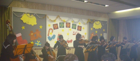 12月15日(日)、栃木県立足利図書館にてクリスマスコンサートを行いました。管弦楽部は毎年この時期に足利図書館視聴覚室にてクリスマスコンサートを行っています。内容は、クリスマスの曲や映画の主題歌など楽しんでいただける曲を用意し、劇ありクイズありと内容も趣向を凝らしたものにしました。3年生が引退し、1,2年生のみの初めてのコンサートであり、部員一同一生懸命取り組みました。当日は多くの方々にご来場いただき、会場が人で埋め尽くされるほど大盛況で終わることができました。お客様の拍手が暖かく、とても楽しいコンサートでした。
