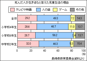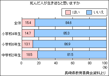 下のグラフは、長崎県「児童生徒の「生と死」のイメージに関する調査の結果です。
