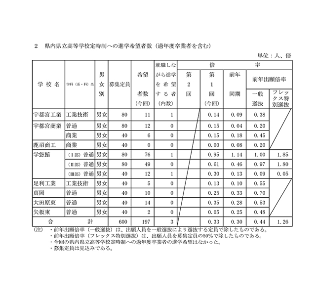 県内県立高等学校定時制への進学希望者数 - データのダウンロード