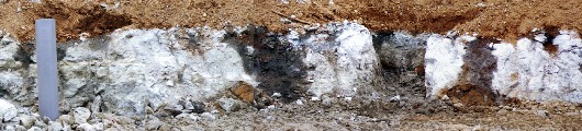 この露頭の礫岩(れきがん)および泥岩層から多数の貝化石や浮遊性有孔虫化石(ふゆうせいゆうこうちゅうかせき)が産出しました。