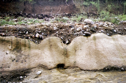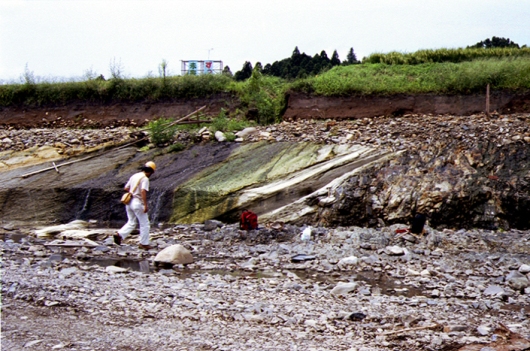 その後河川の改修が進められ、それに伴って現れた不整合(ふせいごう)※1の露頭です。