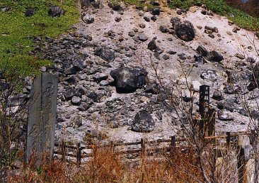 その毒気に当たった虫の死骸が数多く見られると芭蕉は記していますが、現在でも硫黄のにおいが強く、荒涼とした場所です。
