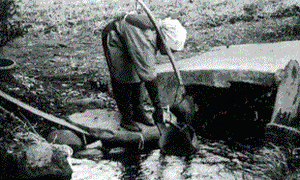 開拓当初の「水くみ」風景(那須野が原博物館提供)