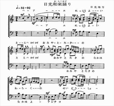 ハアーエー 日光よいとこ (ハヨイヨイ) お宮と滝の中は 和楽の アレサヨー 精銅所