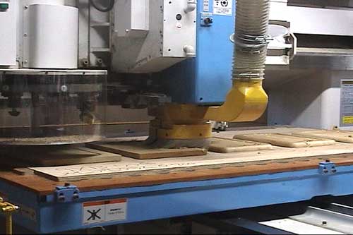刃物を固定し、型に合わせてハンドルで刃物を移動していきます。主に丸形の成型をします。