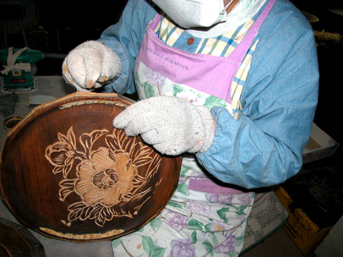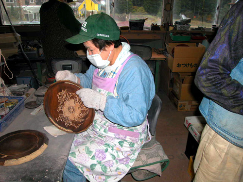 木地のザラや目荒れなどを防ぐために下塗りをします。 下塗りを完璧にしないとよい製品になりません。