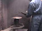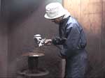 スプレーガンでていねいに仕上げの塗料を塗っていきます。