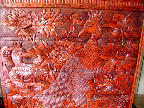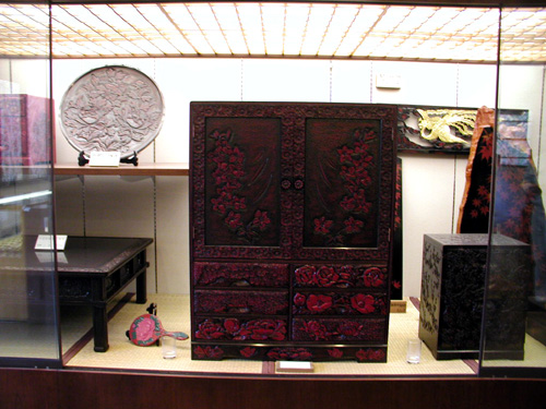 タンス。彫りの技術をきわめた芸術品です。(日光木彫りの里工芸センター収蔵)