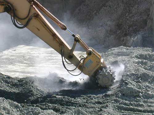 採掘機が乗るように、平らにしています。