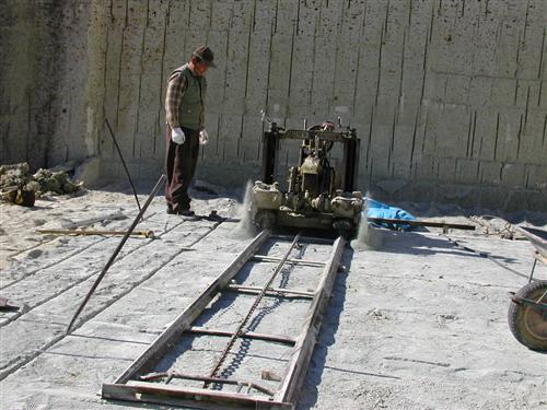 約32cm×39cm×95cmの大きさに石を切り出します。