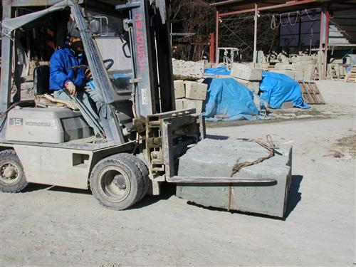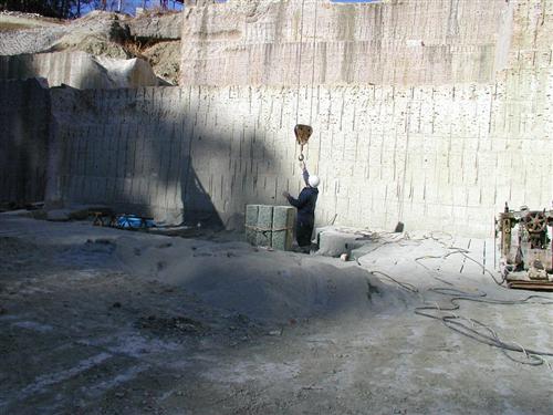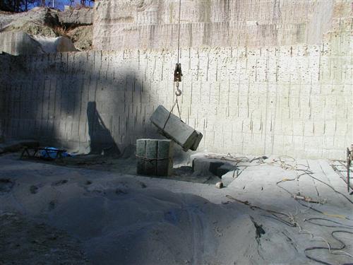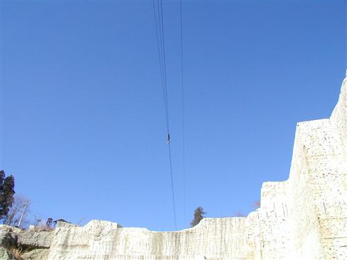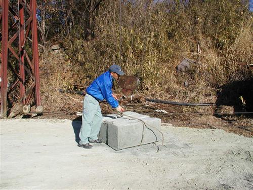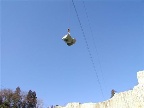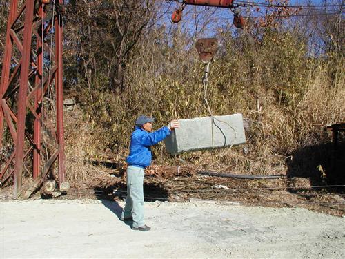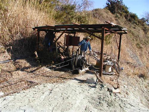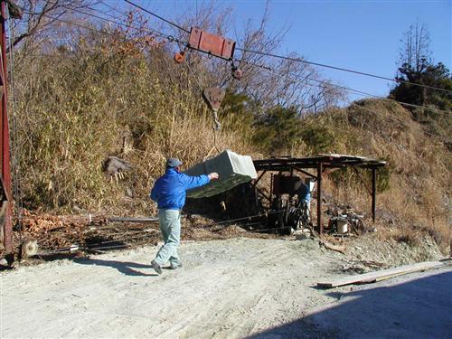 3本1組にした原石をウインチ(復胴エンドレスウインチ)で地上まで引き上げます。