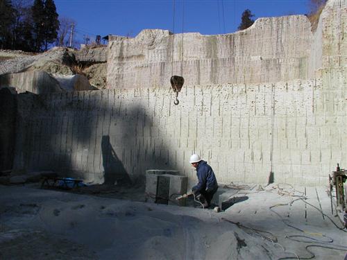 1本が150kgもある原石を「背負子(しょいこ)」を使い、1人で1本1本背負って採掘場から運び出していました。