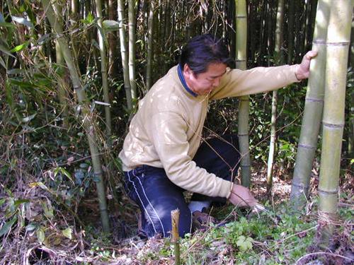 竹細工には、強く柔軟性のある3年目の竹を使います。