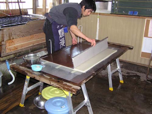 漉き終わったら、水分をおおまかに切ります。