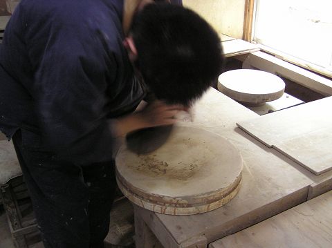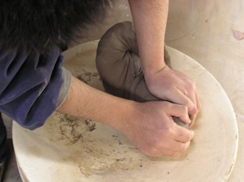 益子焼(ましこやき)共同組合から仕入れた陶土を、もう一度もみます。