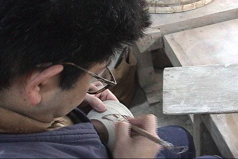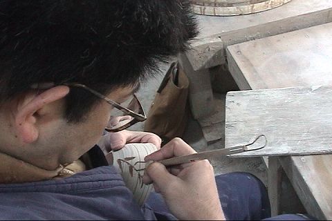 乾いたら、カンナで模様を彫ります