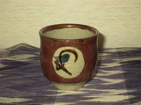 ロウ抜き、窓に草紋の湯呑み |