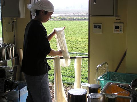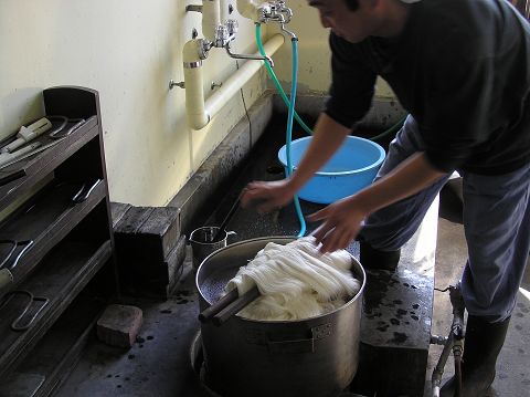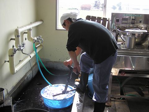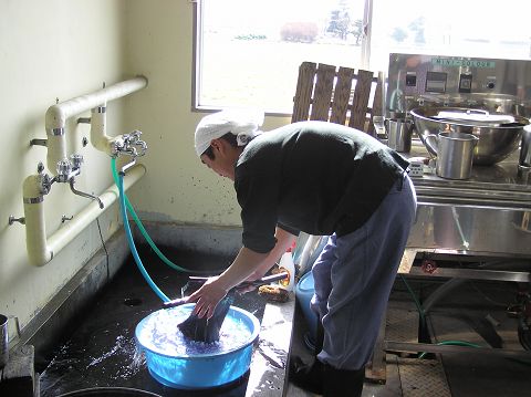 まんべんなく染みるように、道具を使って、ひっくり返します
