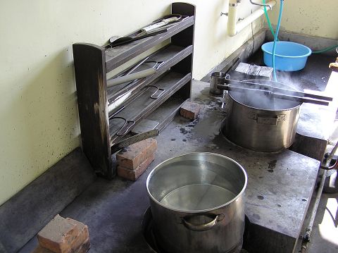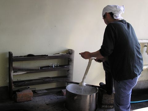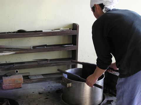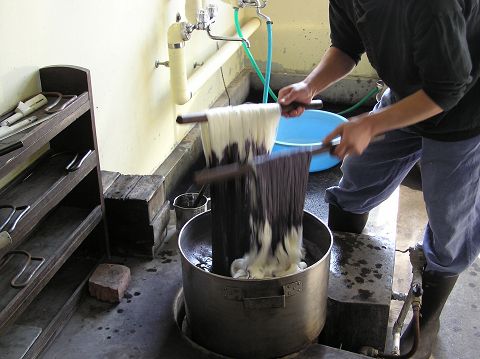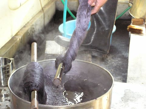 まんべんなく染まるように、道具を使って、ひっくり返します