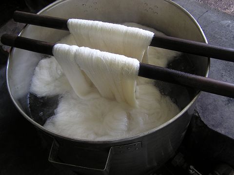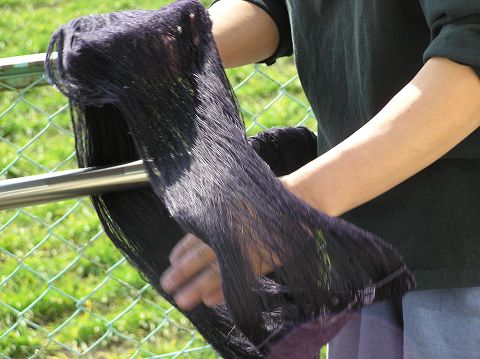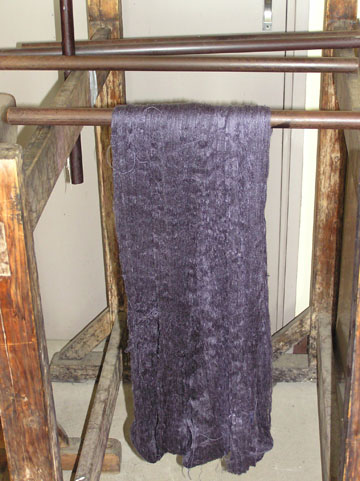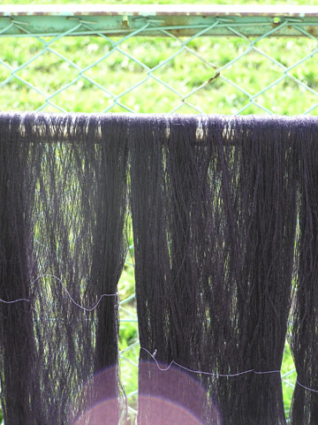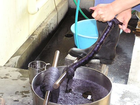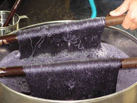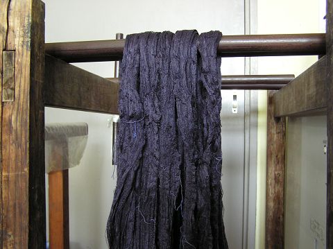 つむいだ人によって糸に微妙な違いが出るため、染め上がりも違ってきます