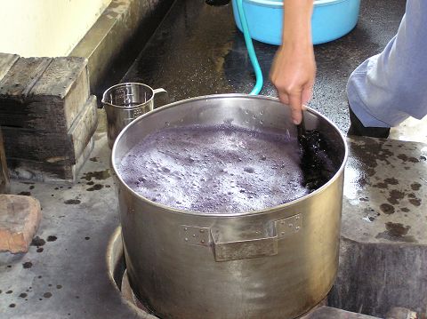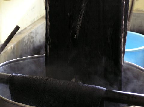 温度によって染まり方が違うので、温度を上げながら、何度も染めを繰り返します