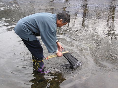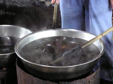 たたくことにより、ムラなく染まりますが、その加減は難しく、熟練者でなくてはうまく出来ません。