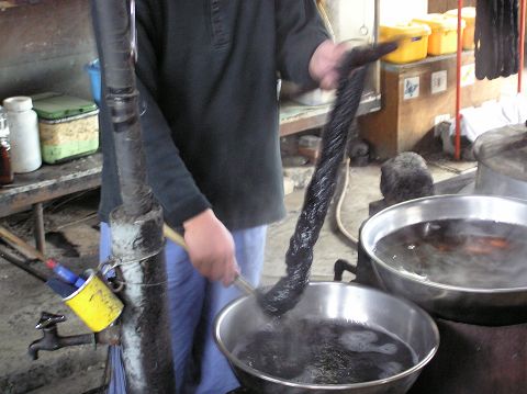 複数の色を使う図案のときは、ここで作り方、脱色、染色を繰り返します。