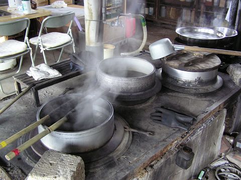 昔はこの板間で、機屋(はたや)が染め上がりを待っていました