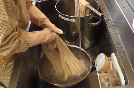 色染めの際、糸をむらなく均等に染めるためでもあります。