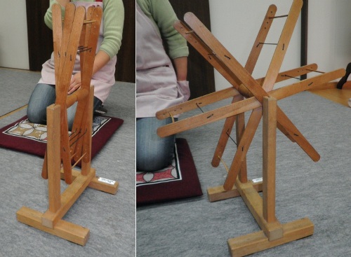 「綛かけ(かせかけ)」と「綛台(かせだい)」(*1)といい、綛は丸になるようにセットします。