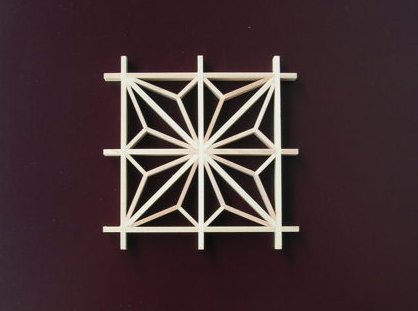 組子とは、障子(しょうじ)などに使われる細かい部材(ぶざい)のことで、一般には桟(さん)と呼ばれるものより細かい部材のことを言います。 障子の格子(こうし)の部分を、職人たちが技術を競い合って細く、複雑にしていったものを組子と呼ぶようになりました。