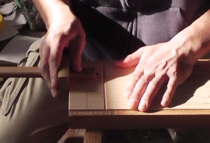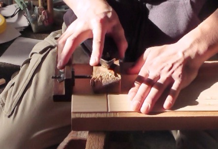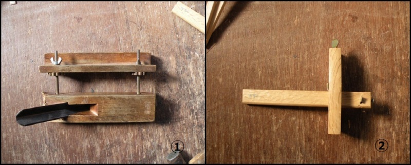 使用する工具 ①際鉋(きわかんな)②毛引き