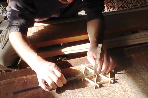 地組の大きさに合わせながら組子模様のパーツを作っていきます。
